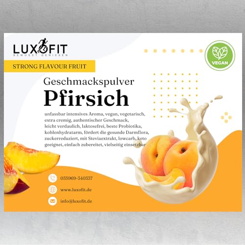Luxofit STRONG FLAVOUR FRUIT Kalorienarmes Geschmackspulver vielseitig einsetzbar für Lebensmittel, 300 Gramm, Gesunde Ernährung, Natürliche Farbstoffe, Made in Germany (Pfirsich)
