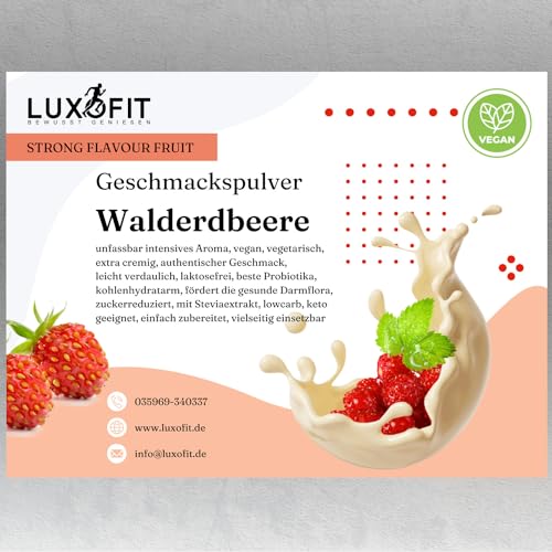 Luxofit STRONG FLAVOUR FRUIT Kalorienarmes Geschmackspulver vielseitig einsetzbar für Lebensmittel, 300 Gramm, Gesunde Ernährung, Natürliche Farbstoffe, Made in Germany (Walderdbeere)