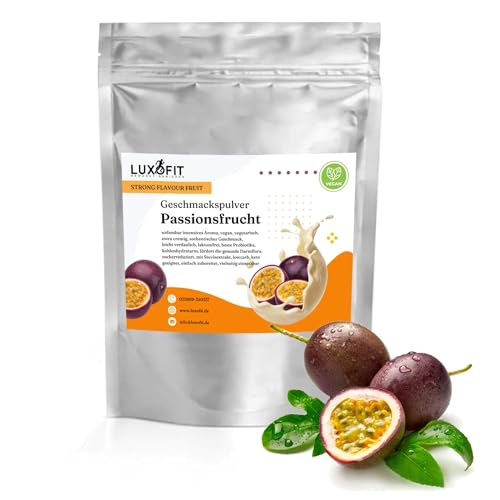Luxofit STRONG FLAVOUR FRUIT Kalorienarmes Geschmackspulver vielseitig einsetzbar für Lebensmittel, 300 Gramm, Gesunde Ernährung, Natürliche Farbstoffe, Made in Germany (Passionsfrucht)