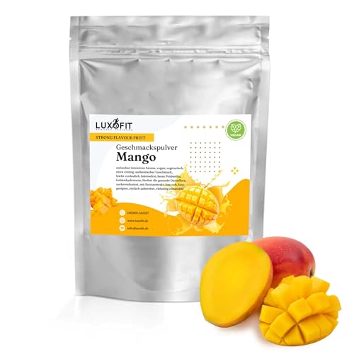 Luxofit STRONG FLAVOUR FRUIT Kalorienarmes Geschmackspulver vielseitig einsetzbar für Lebensmittel, 300 Gramm, Gesunde Ernährung, Natürliche Farbstoffe, Made in Germany (Mango)