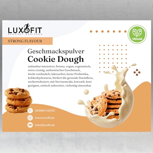 Luxofit STRONG FLAVOUR Kalorienarmes Geschmackspulver vielseitig einsetzbar für Lebensmittel / 300 Gramm, Made in Germany, Vegan und Vegetarisch, Getränkearoma Pulver (Cookie Dough)
