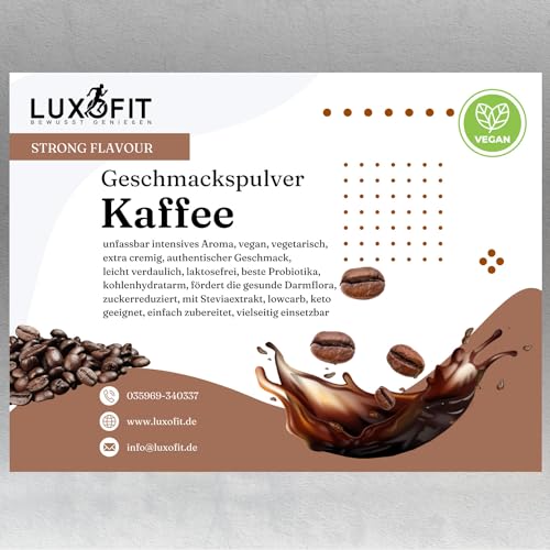 Luxofit STRONG FLAVOUR Kalorienarmes Geschmackspulver vielseitig einsetzbar für Lebensmittel Geschmackspulver Strong Flavour / 300 Gramm, Vielseitig einsetzbares Getränkearoma Pulver (Kaffee)