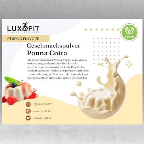 Luxofit STRONG FLAVOUR Kalorienarmes Geschmackspulver vielseitig einsetzbar für Lebensmittel / 300 Gramm, Made in Germany, Vegan und Vegetarisch, Getränkearoma Pulver (Panna Cotta)