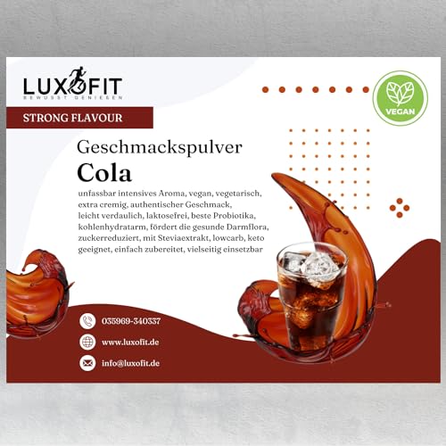 Luxofit STRONG FLAVOUR Kalorienarmes Geschmackspulver vielseitig einsetzbar für Lebensmittel Geschmackspulver Strong Flavour / 300 Gramm, Vielseitig einsetzbares Getränkearoma Pulver (Cola)
