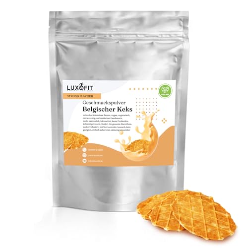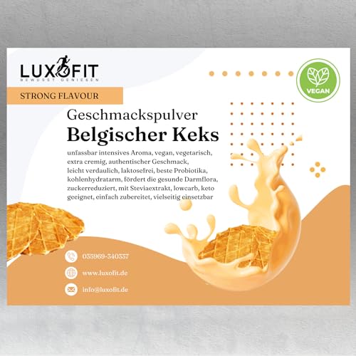 Luxofit STRONG FLAVOUR Kalorienarmes Geschmackspulver vielseitig einsetzbar für Lebensmittel / 300 Gramm, Made in Germany, Vegan und Vegetarisch, Getränkearoma Pulver (Belgischer Keks)