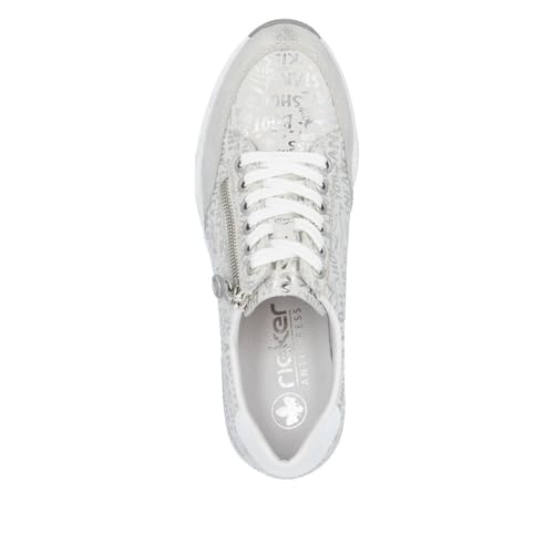 Rieker Damen Low-Top Sneaker N4316, Frauen Halbschuhe, lose Einlage,Strassenschuhe,Freizeitschuhe,Turnschuhe,Silber/Platin (90),37 EU / 4 UK