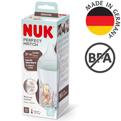 NUK Perfect Match Babyflasche | Ab 3 Monate | Passt sich dem Baby an | Temperature Control | Anti-Colic | 260 ml | BPA-frei | Silikontrinksauger, Medium | Disneys Winnie Puuh