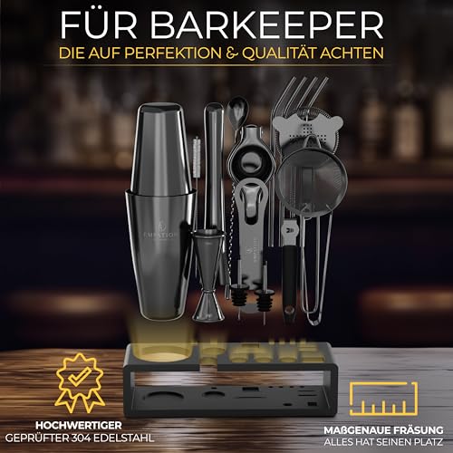 EMPATION Cocktail Set Schwarz [TESTSIEGER], 825ml Cocktail Shaker mit Bar Zubehör für Cocktails, Bartender Set mit Profi Boston Shaker, Barkeeper Set, Bar Set, Cocktailshaker Set, Cocktail Mix Set