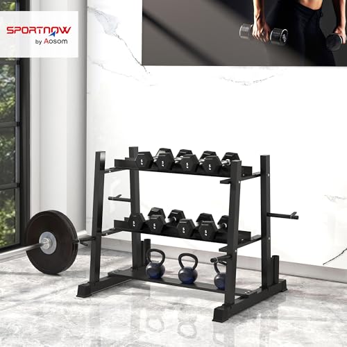 SPORTNOW Hantelständer, Kurzhantelständer mit 3 Ablagen, Hantelablage, Gewichtshalter für Kurzhantel, Kettlebell, bis 200 kg belastbar, Stahl, Schwarz, 131 x 75 x 80 cm