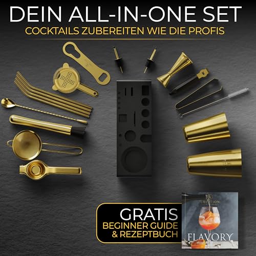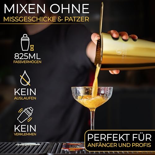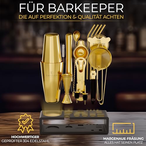 | enthaltene komponenten | Boston Shaker, Jigger/Messbecher, Barlöffel, Muddler/Stampfer, 2x Ausgießer, Eiszange, Hawthorne Sieb, Fine Mesh Citruss Peeler, Limettenpresse, Trinkhalme, Flaschenöffner, Rezeptkarten, Gestell |