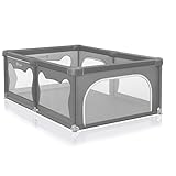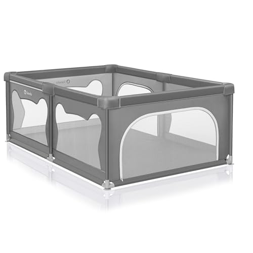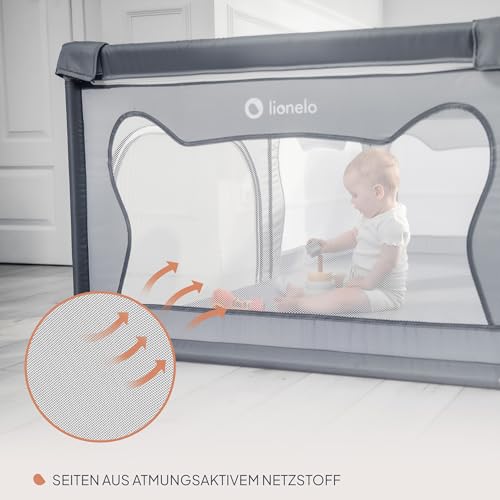 LIONELO WILLOW Laufgitter Baby, ab 0-48 Monaten große Fläche 120 cm x 180 cm x 68 cm mit Seitenwände aus atmungsaktiven, strapazierfähigem Netzstoff, 2 Seitliche Eingänge mit einem Reißverschluss