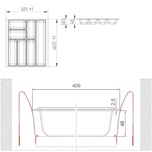 Orga-Box 2 Besteckeinsatz Tiefe: 461 x Breite: 409 mm anthrazit mit Canvas Struktur für 50er Nobilia Schublade bis 07/2012 (BITTE MESSEN SIE IHR SCHUBLADENINNENMAß!)