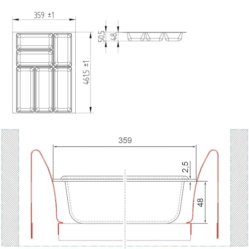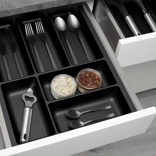SO-TECH Orga-box 2 Besteckeinsatz Tiefe 462 mm für Nobilia Küchen Canvas-Struktur anthrazit Schubladeneinsatz Breite 359 mm für Schubladen 450 mm