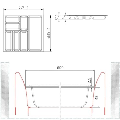 SO-TECH Orga-box 2 Besteckeinsatz Tiefe 462 mm für Nobilia Küchen Canvas-Struktur anthrazit Schubladeneinsatz Breite 509 mm für Schubladen 600 mm