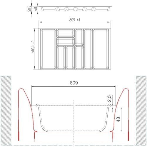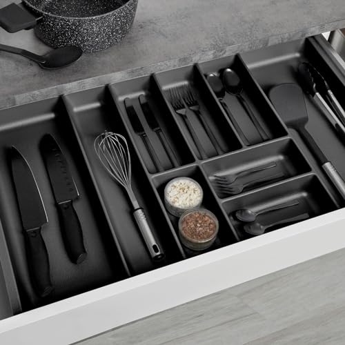 SO-TECH ORGA-BOX 2 Besteckeinsatz Tiefe 462 mm für Nobilia Küchen Canvas-Struktur anthrazit Schubladeneinsatz Breite 809 mm für Schubladen 900 mm