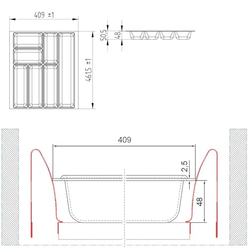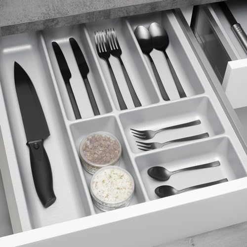 SO-TECH ORGA-BOX 2 Besteckeinsatz Tiefe 462 mm für Nobilia Küchen Canvas-Struktur silbergrau Schubladeneinsatz Breite 409 mm für Schubladen 500 mm