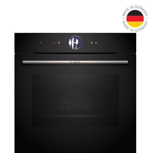 Bosch HBG7363B1, Serie 8 Smarter Einbau-Backofen, 60 x 60 cm, Made in Germany, Schwarz, Schmutzabweisend & Selbstreinigend, Air Fry, Bosch Assist Automatik, 4D Heißluft, Farb-Touchscreen & Bedienring