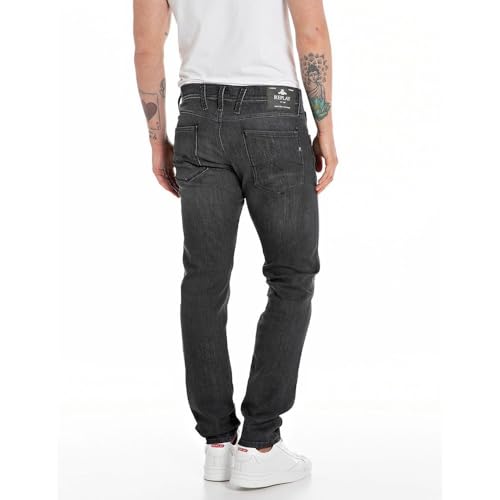 Replay Herren Jeans Anbass Slim-Fit mit Power Stretch, Grau (Dark Grey 097), 36W / 36L