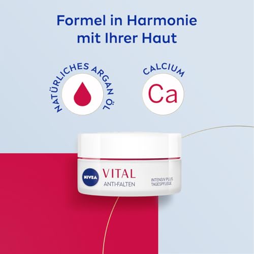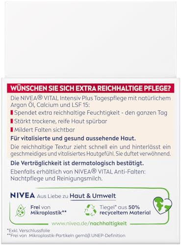 NIVEA VITAL Anti-Falten Intensiv Plus Tagespflege LSF 15, Gesichtspflege für reife Haut mit natürlichem Argan-Öl und Calcium, Tagescreme mit LSF für intensive Feuchtigkeit (50 ml)