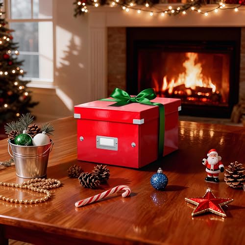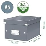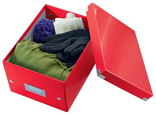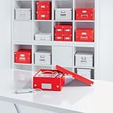 Leitz Click & Store Aufbewahrungsbox mit Deckel Klein, Box für Unterlagen bis A5 im Büro u. Haushalt, Transportbox aus 84% recycelter Premium-Hartpappe, Etikettenhalter, Rot, 60430026