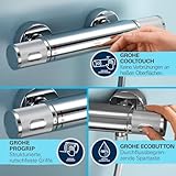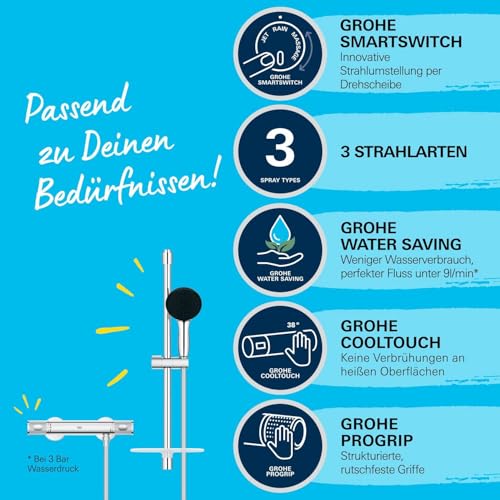 GROHE Precision Feel, Duschset mit Thermostat wassersparend, 8l pro Min (Duscharmatur hält Temperatur konstant, Duschkopf 3 Strahlarten, 1,75m Schlauch, Duschstange 60cm, 3in1 Tool), chrom, 34791001