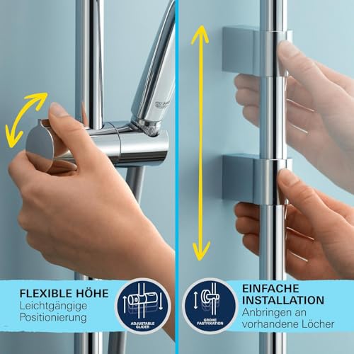 Grohe Duschsystem, Precision Feel QuickFix Thermostat-Duscharmatur und Vitalio Start 110 Brausestangenset, Länge 600mm