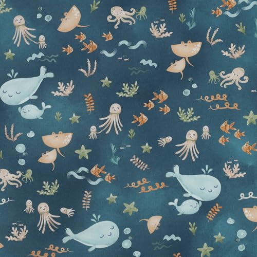 VmG-Store Baumwollstoff Meterware 140cm Breite Stoffe zum Nähen Nähstoff Kinderstoff für Kissen Babykleidung Kinderkleidung DIY (Frösche Pilze Bb006)