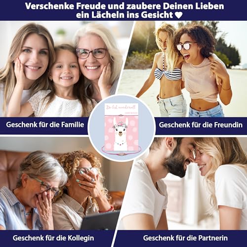 Rosenquarz Edelstein-Armband, Du bist wundervoll Lama Glückwunschkarte, handmade