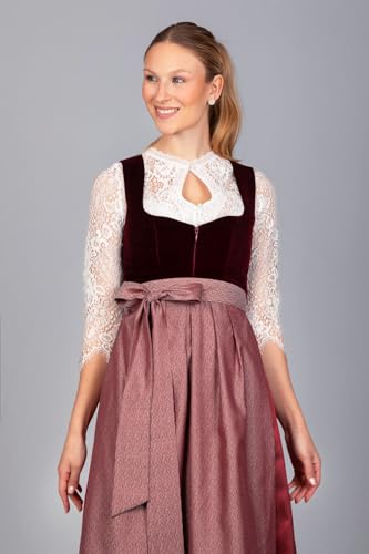 Edelnice Trachtenmode Exklusives Designer Midi Dirndl Lilly Samt rot inkl. Dirndlschürze Gr. 32-54 (32)