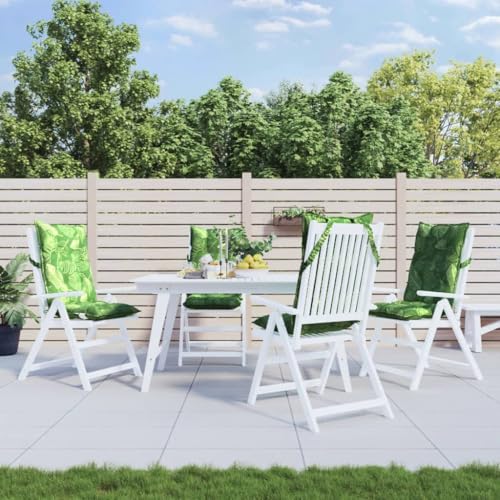 vidaXL Hochlehner Auflagen 4 STK., Hochlehner Auflage mit PP-Hohlfasern, Stuhlauflage mit Gummibänder Bindebänder, Sitzkissen, Blattmuster Oxford-Gewebe