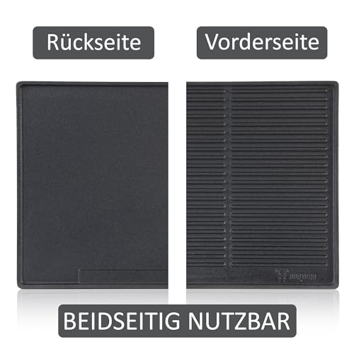 BBQ-Toro Gusseisen Grillplatte | 48 x 31,5 cm | Wendeplatte, beidseitig verwendbar | Rechteckig, Universal und Massiv | Grillblech für Holzkohle und Gas, Grillzubehör, Grillpfanne, Grillschale