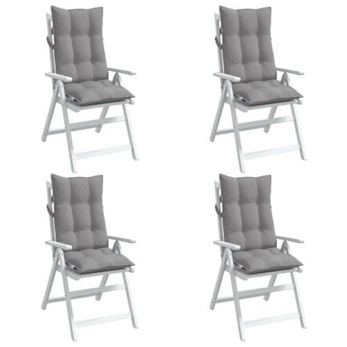 vidaXL Hochlehner Auflagen 4 STK., Hochlehner Auflage mit PP-Hohlfasern, Stuhlauflage mit Gummibänder Bindebänder, Sitzkissen, Grau Oxford-Gewebe