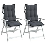 vidaXL Hochlehner Auflagen 2 STK., Hochlehner Auflage mit PP-Hohlfasern, Stuhlauflage mit Gummibänder Bindebänder, Sitzkissen, Anthrazit Oxford-Gewebe