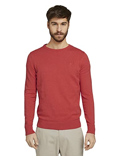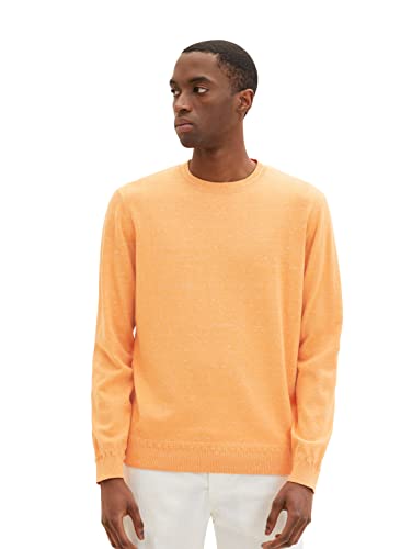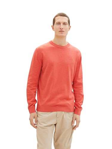 Rundhalspullover TOM TAILOR, Herren, Gr. XL, orange (coral rot melange), Strick, Obermaterial: 100% Baumwolle, meliert, regular fit, Rundhals, Bündchen, Pullover, mit Logostickerei