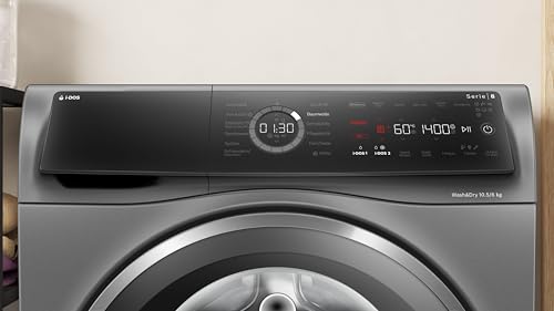 Bosch WNC254AS0, Serie 8, Smarter Waschtrockner, 10.5 kg Waschen & 6 kg Trocknen, 1400 UpM, i-Dos intelligente Waschmittel-Dosierung, entfernt 16 Fleckenarten, IronAssist mit Dampffunktion, AutoDry