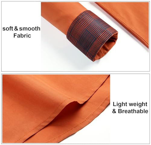 HISDERN Herrenhemden, langärmelig, klassisch, Business, reguläre Passform, für Hochzeit, Arbeit, bügelfrei, mit Tasche, Orange, 3XL