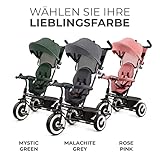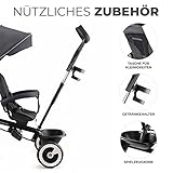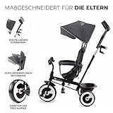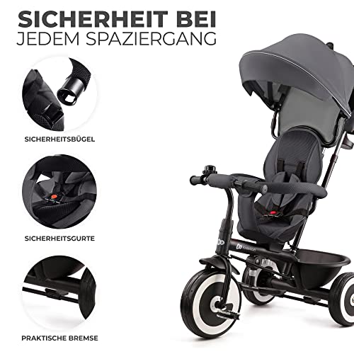 Kinderkraft Aston Dreirad ab 9 Monate bis 25 kg, Kinderdreirad mit schubstange, drehbarer Sitz Vorwärts und Rückwärtsfahrt, ausklappbarem Verdeck mit Sonnenschutz, Getränkehalter Korb im Set, Grau
