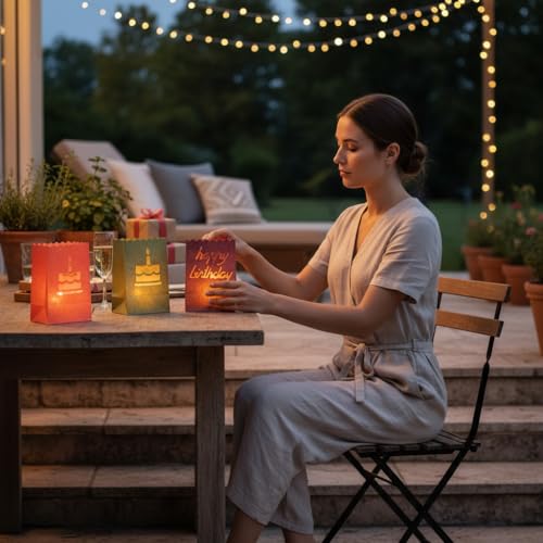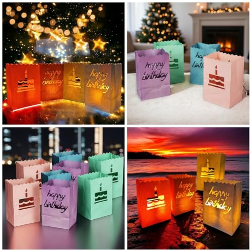 Lichtertüten Papierlaterne - 20er Set - 16 x 11 x 8,5cm - birthday bunt - Wiederverwendbar Lichttüten - Tischdeko Geburtstag Candle Bags für Birthday Party - Teelichter LED Kerzen Kerzentüten