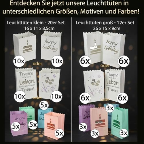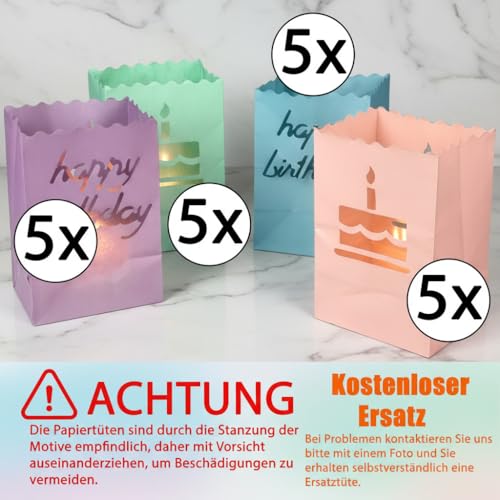 Lichtertüten 20er Set Lichttüten Papierlaternen Papier Leuchttüten Happy Birtday