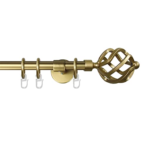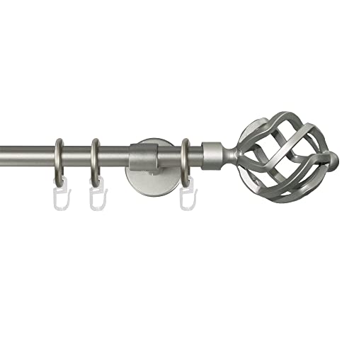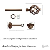 Gardinenstange GARESA RUSTIKA, braun (bronzefarben), L:360cm Ø:16mm, Metall, Gardinenstangen, rustikale Vorhanggarnitur, verlängerbar, m. Ringe, Endknopf Korb