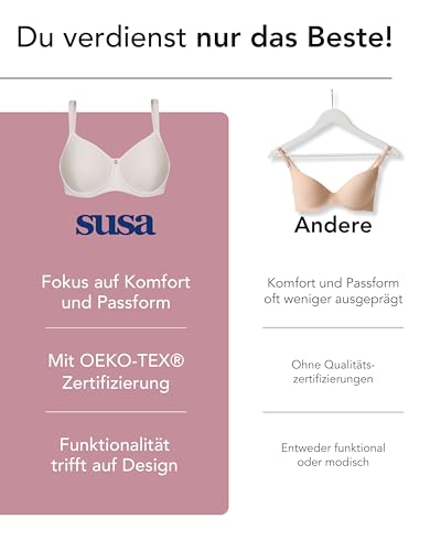 Susa Spacer BH Damen mit Bügel Catania I Damen-BHS aus atmungsaktivem Spacer Material I Angenehmes Hautgefühl I Cups ohne Naht vorgeformt I Sand I 70E