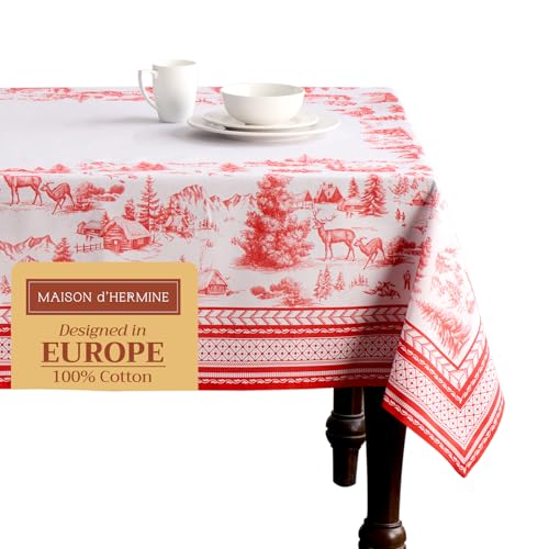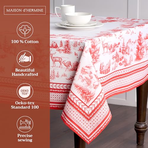 Maison d' Hermine Tischdecke rechteckig, 152,4 x 228,6 cm, 100 % Baumwolle, wiederverwendbar, dekorativ, für Alltag, Esszimmer, Bauernhaus, Zuhause, Party, Feste und Hochzeit, Winter Jouy