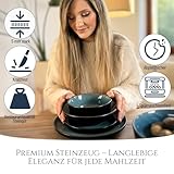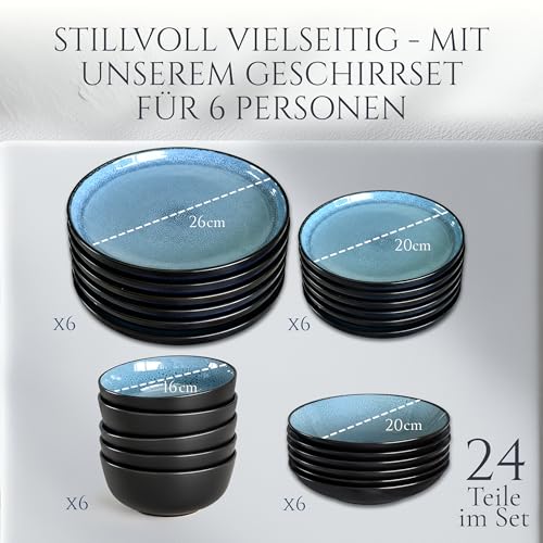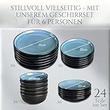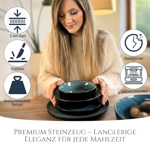 Steingut Geschirrset 6 Personen Ibiza 24 tlg. TESTSIEGER, Traumhaftes Mediterranes Steingut Geschirr Set, Schüssel- und Teller Set, Tafelservice 6 Personen, Geschirrsets Pure Living in Petrol