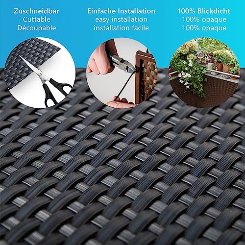 NYVI Polyrattan Balkon Sichtschutz Privafence - Balkonbespannung mit Metallösen - UV-fest, Wetterfest, 100% Blickdicht Größe:90x300 cm;Farbe:Beige RD18