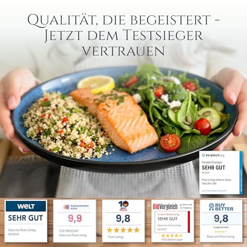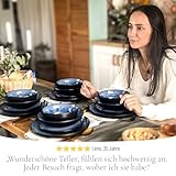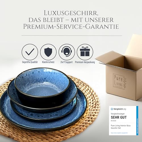 Steingut Geschirrset 6 Personen Ibiza 24 tlg. TESTSIEGER, Traumhaftes Mediterranes Steingut Geschirr Set, Schüssel- und Teller Set, Tafelservice 6 Personen, Geschirrsets Pure Living in Tiefblau