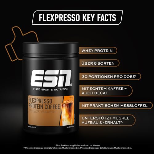 ESN Flexpresso Protein Coffee, Caramel, 908 g, cremiger Protein-Kaffee mit bis zu 22 g Protein pro Portion - made in Germany