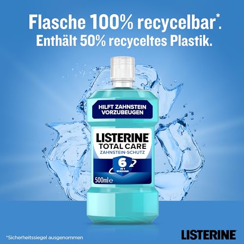 LISTERINE Total Care Zahnstein-Schutz 500 ml, schützende Mundspülung gegen Zahnstein mit 6 in 1 Wirkung, antibakterielles Mundwasser schützt vor Zahnfleischproblemen, bis zu 24h frischer Atem