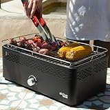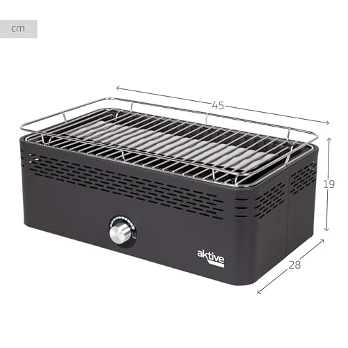 Aktive 63004 - Tragbarer Holzkohlegrill, wiederaufladbar, batteriebetrieben, rauchfrei, schwarz, rechteckig, Tropfschutz, Maße 45x28x19cm, inkl. Tragetasche, Terrassen-, Balkongrill