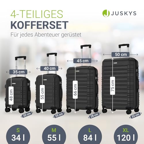 Juskys Hartschale Kofferset Rom Reisekoffer 4 teilig - Zahlenschloss, 360° Rollen - Schwarz