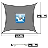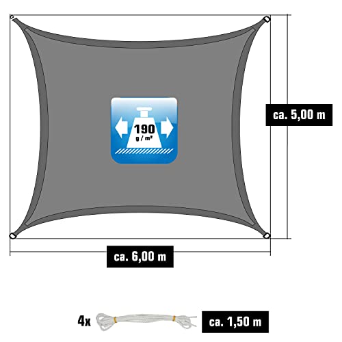 AMANKA 98% UV Schutz: Sonnensegel 5x6m - für die Terrasse Segeltuch Sonnenschutz Schattenspender Garten Balkon Segel, Grau